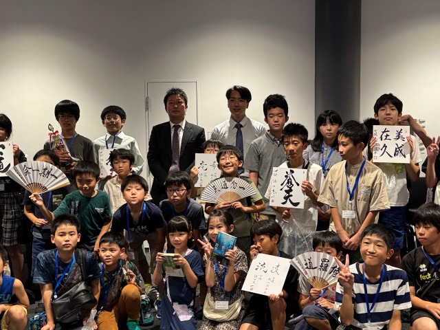 県内外から50人の小中学生が参加し、今年は特別ゲストに周南市出身の徳田挙士四段に加え、船江恒平七段もお招きし、トーナメント対局、自由対局、プロ棋士による指導対局が行われました。